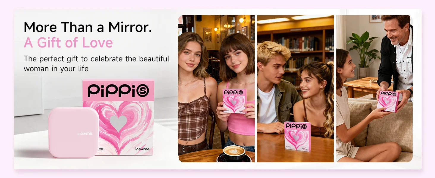 inewme Mini UV Camera Mirror for Sunscreen Check, Portable 3″ Compact Travel Mirror with LED Light & UV-Sensing Color Changing Shell, 3-Color Dimming, Tech Beauty Gift for Skincare Lovers