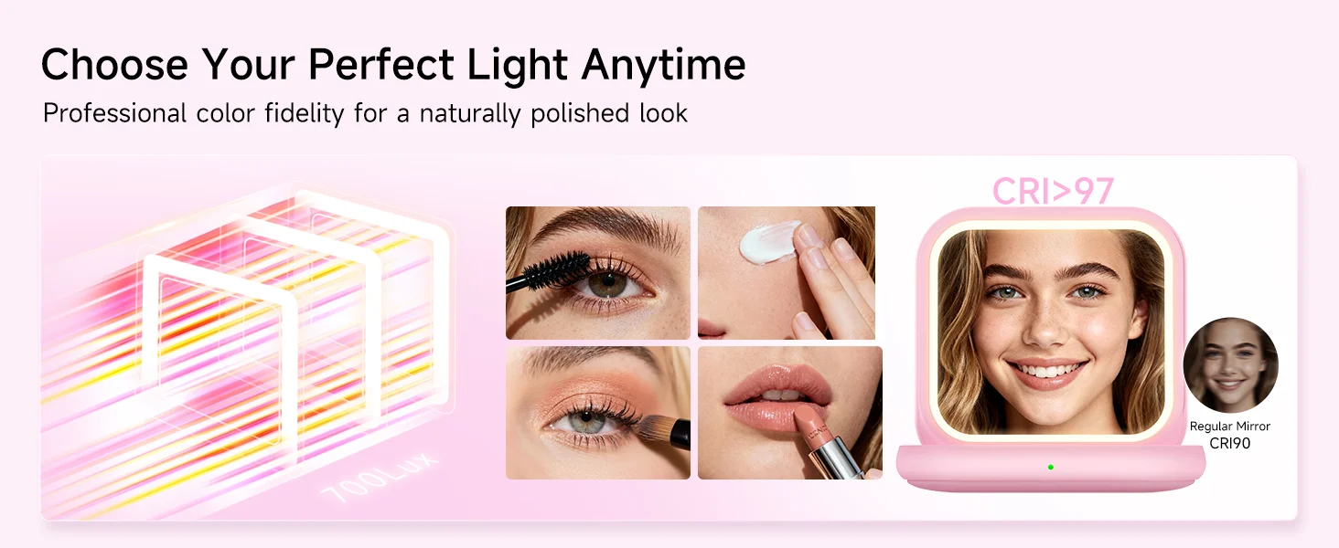 The lighting is actually bright enough without being harsh, which makes doing makeup way easier. I also love that it doesn’t distort — you can see everything clearly (maybe a little too clearly sometimes ?).
