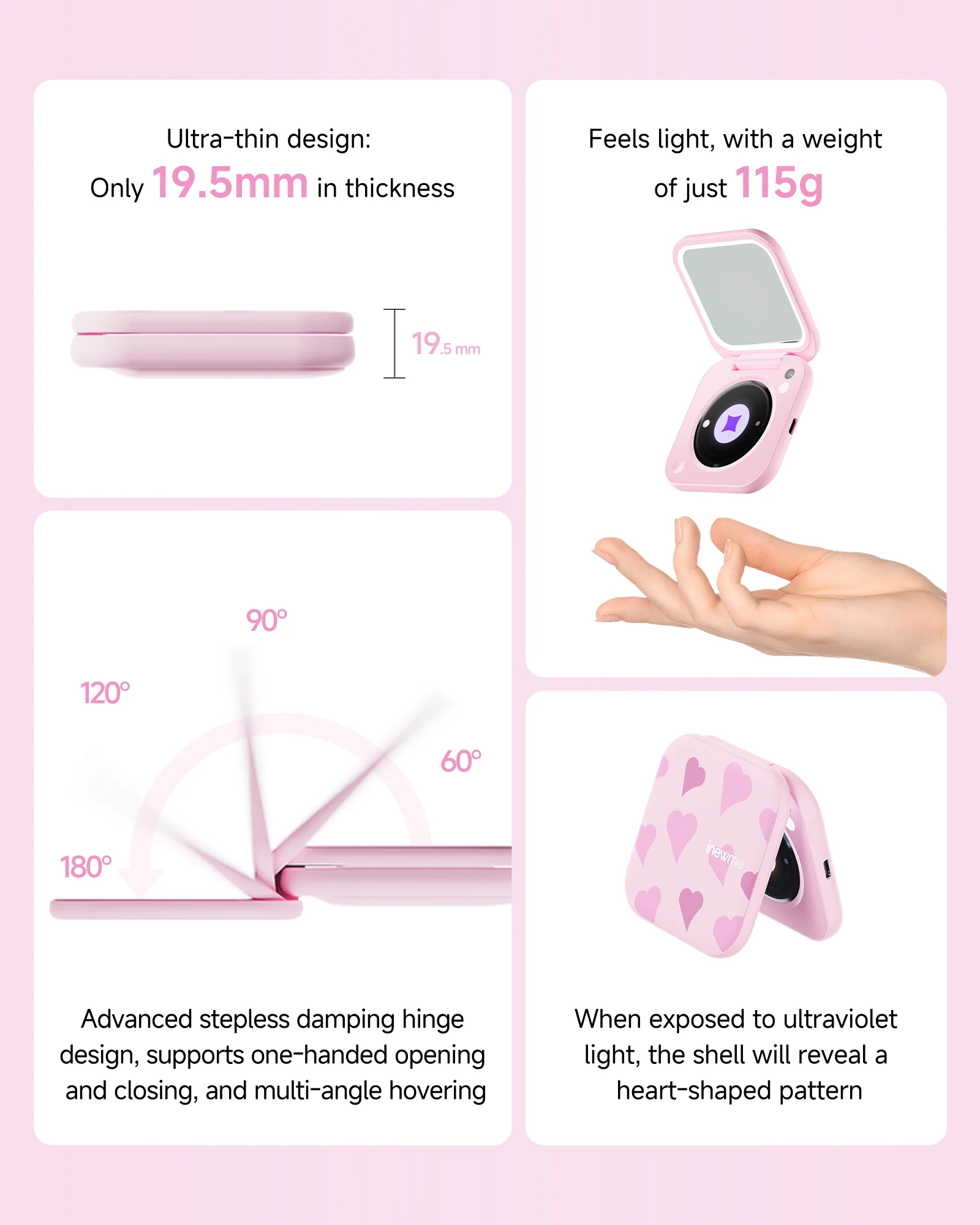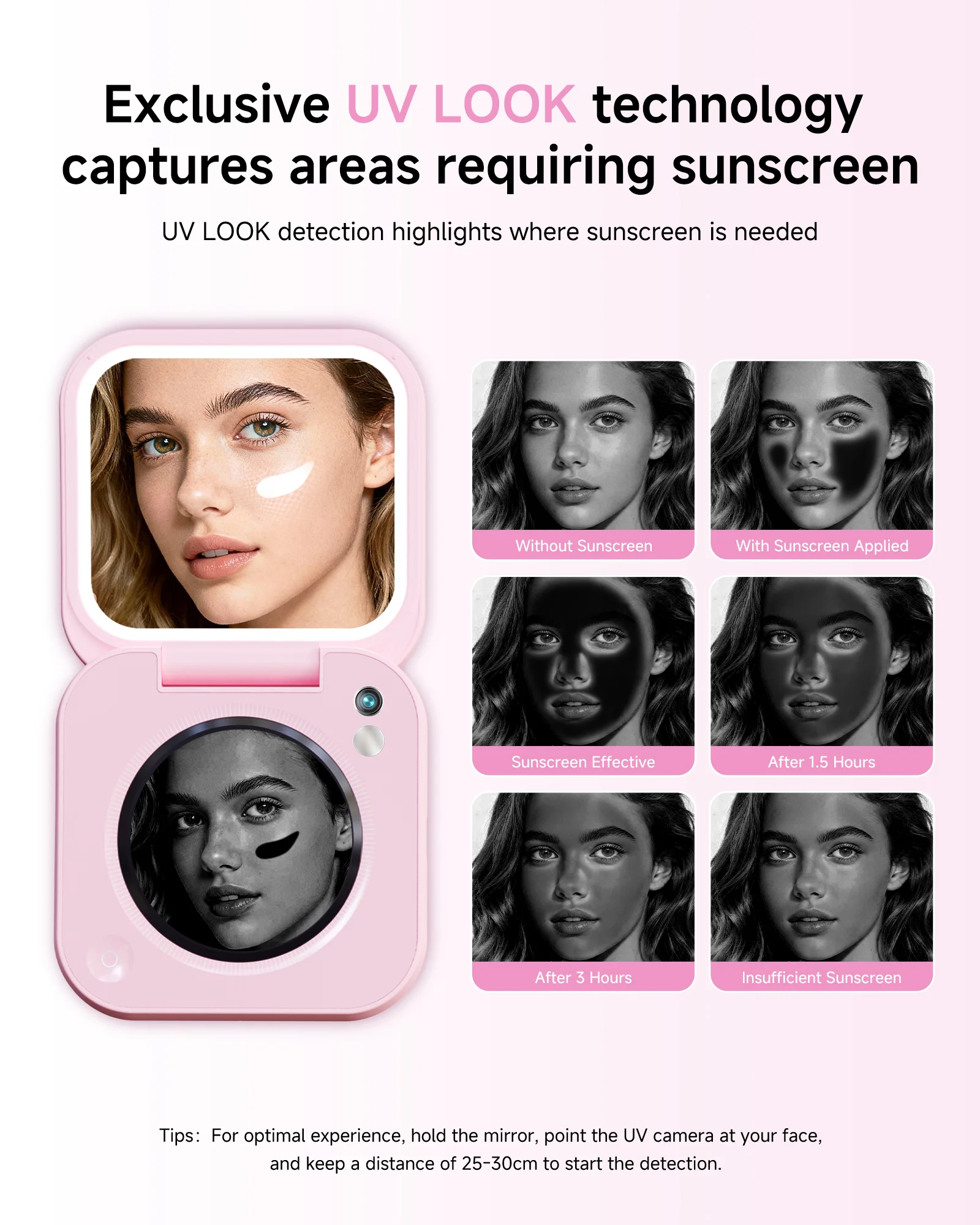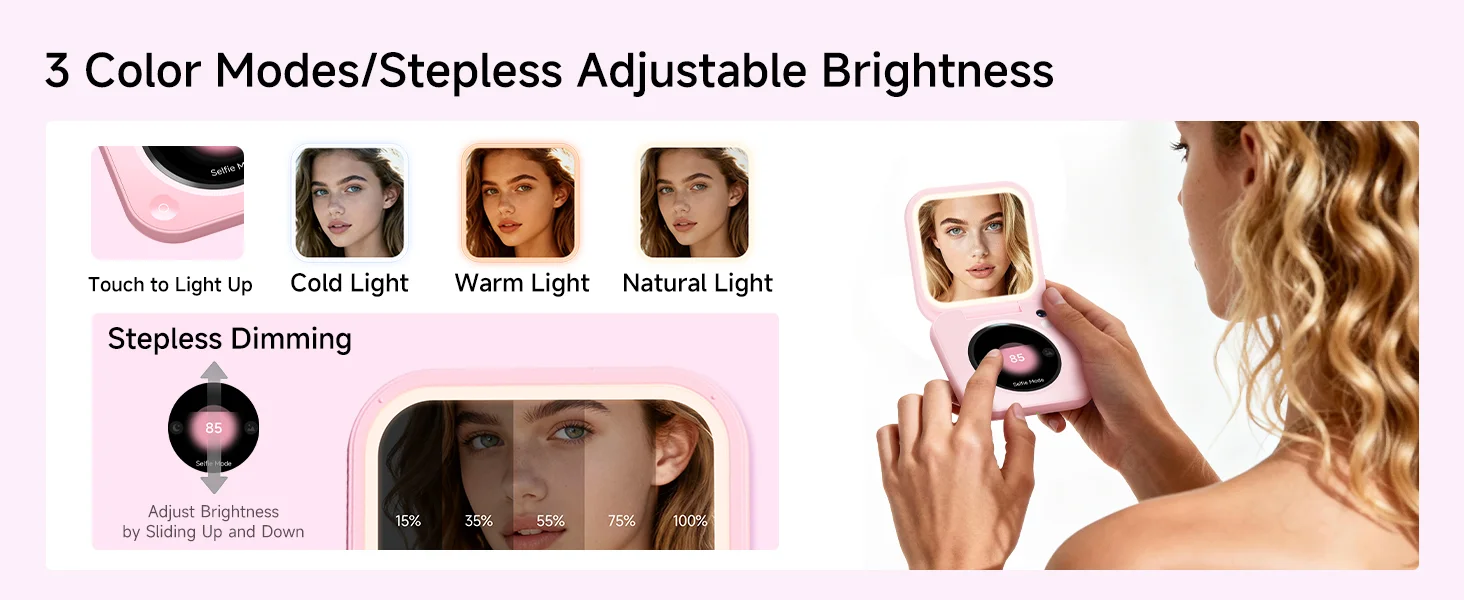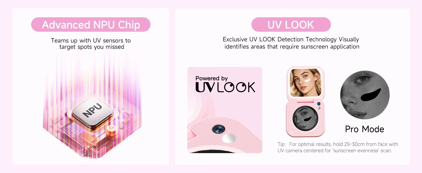 inewme Mini UV Camera Mirror for Sunscreen Check, Portable 3″ Compact Travel Mirror with LED Light & UV-Sensing Color Changing Shell, 3-Color Dimming, Tech Beauty Gift for Skincare Lovers